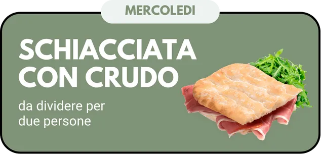 Mercoledì è la serata perfetta per due. Ordina due pizze e ricevi in omaggio una schiacciata con crudo, da condividere con chi vuoi.