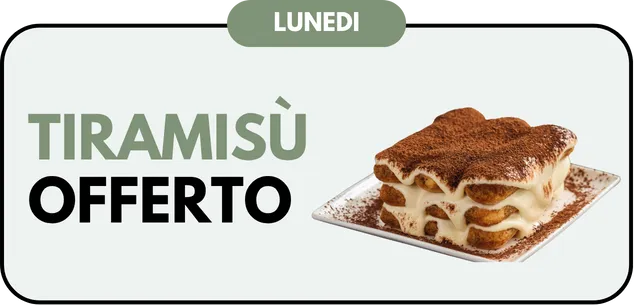 Inizia la settimana con dolcezza. Ordina la tua pizza preferita e noi ti offriamo il nostro tiramisù.